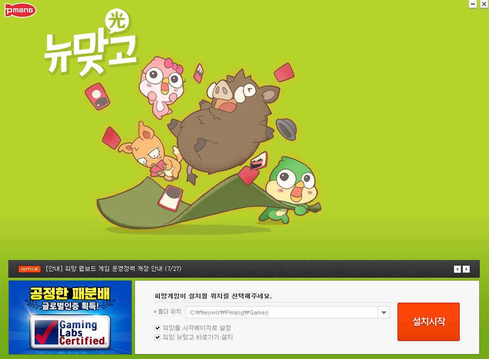 피망 뉴 맞고와 피망게임이 처음 설치라면 피망스타터(Pmang starter setup)을 설치해야합니다.