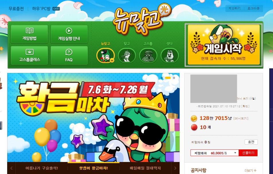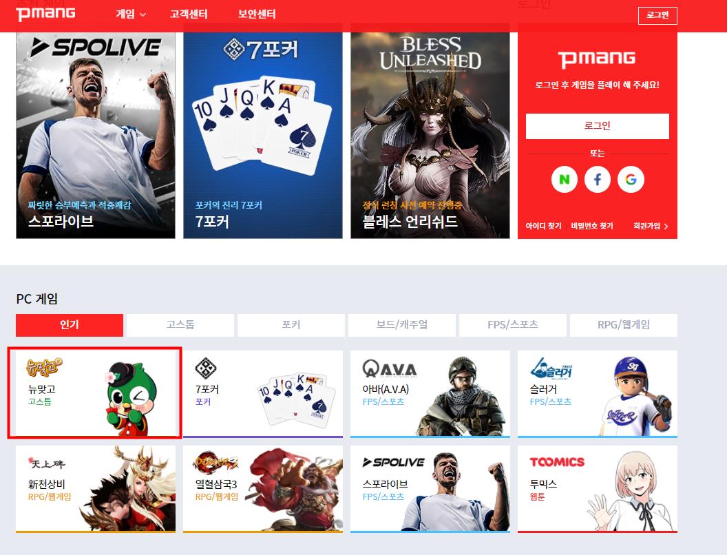 로그인후 피망 뉴맞고 홈페이지로 이동합니다.