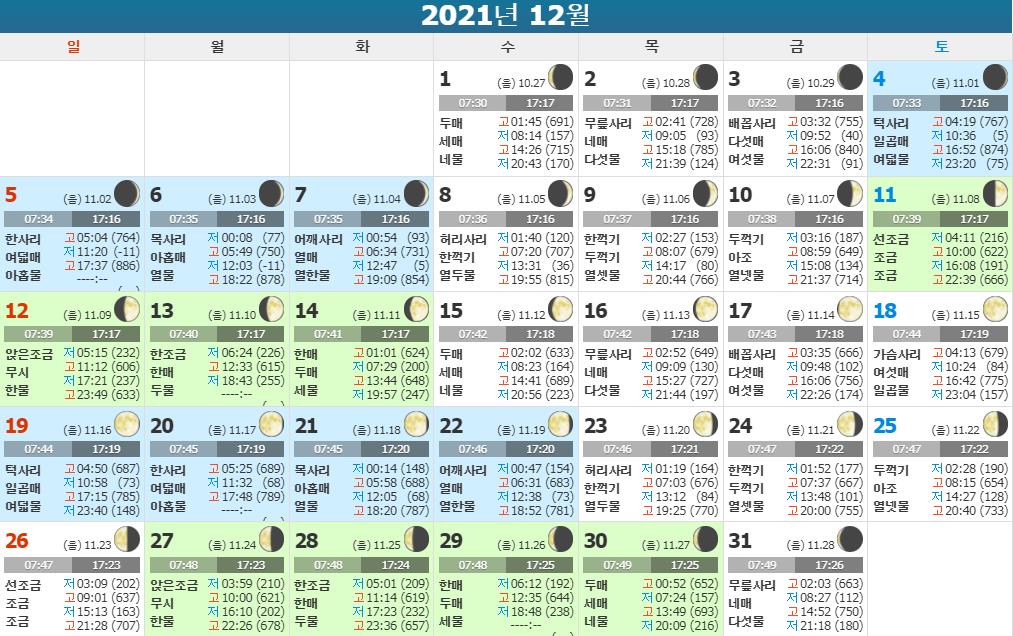 이상으로 영종도 12월 물때 시간표에 대해 알아보았습니다.