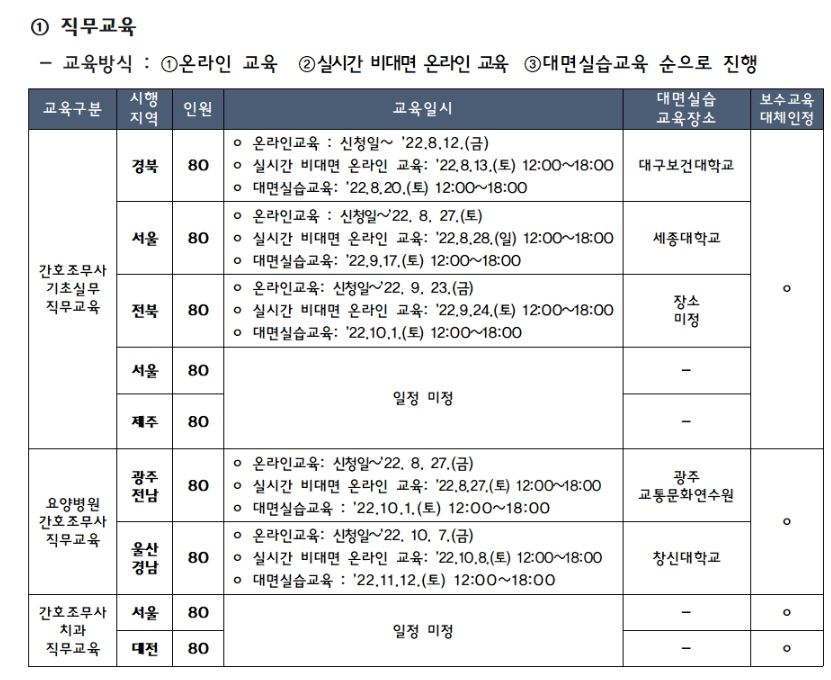대한간호조무사협회 보수교육센터에서는 간호조무사 직무교육,치매전문교육등 전문 교육도 함께 진행되고 있으며 정기보수교육과 대체인정되기도 합니다.