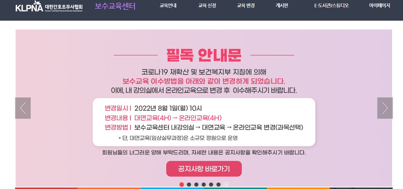간호조무사 보수교육 홈페이지(klpnedu.or.kr)