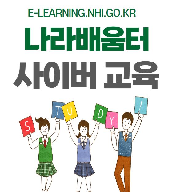 나라배움터 사이버 교육센터 홈페이지(e-learing.nhi.or.kr)에 접속한 메인화면입니다.