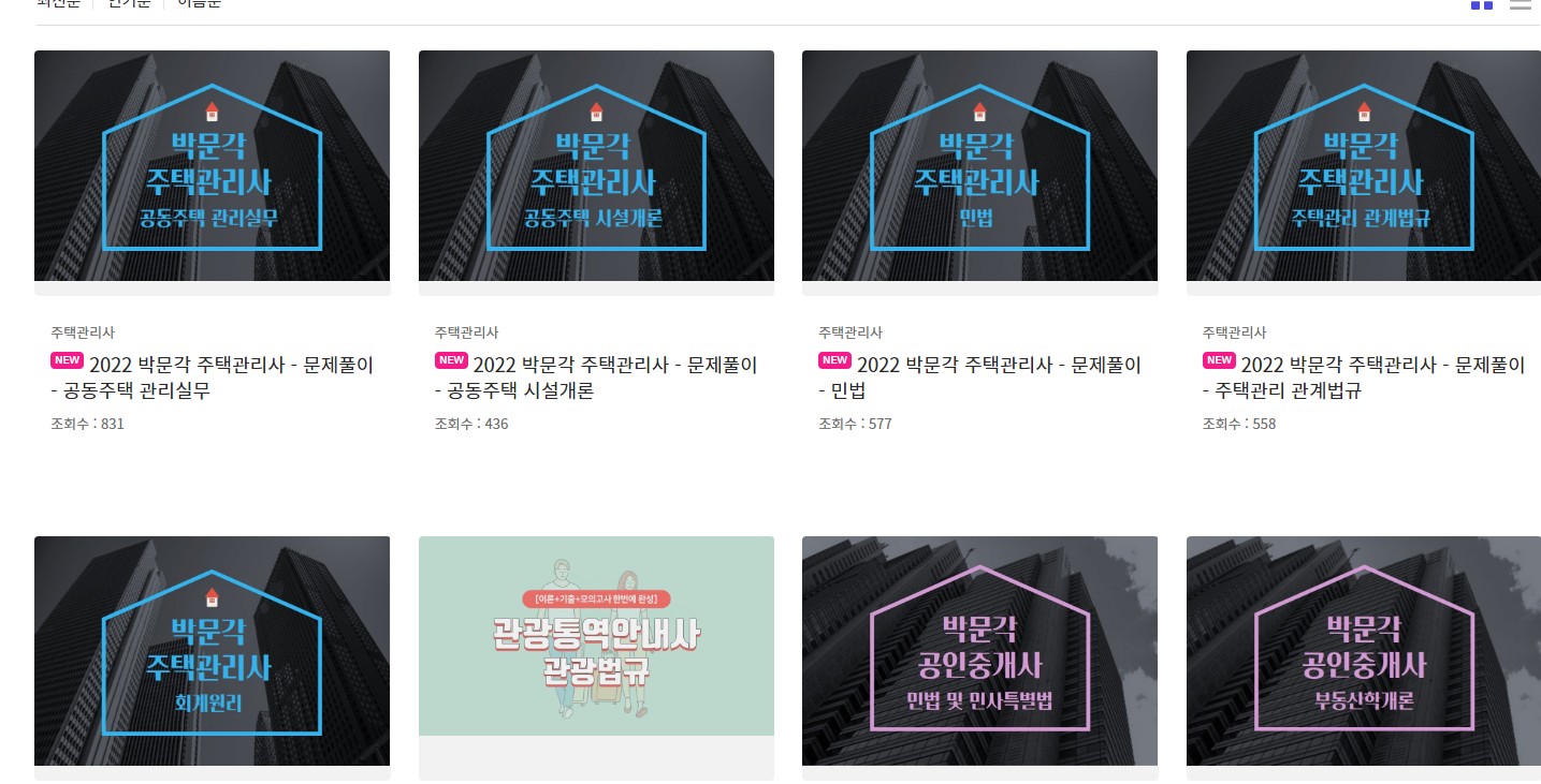 주택관리사와 공인중개사등 다양한 자격증의 시험에 대비한 강의도 신청해 이수 할수 있습니다.