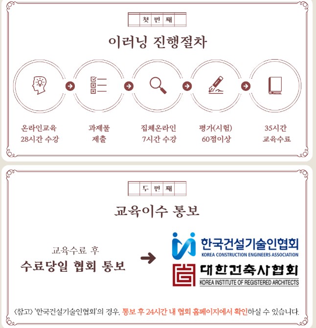 이후 수료당일후 한국건설인 기술인협회와 대한건축사 협회에 통보가 됩니다.