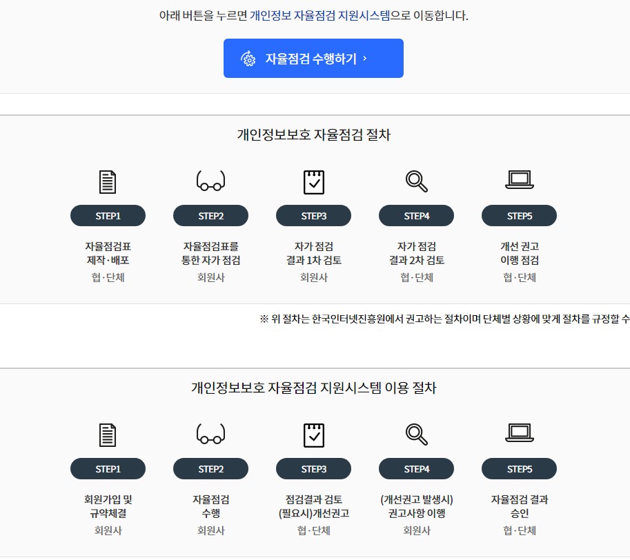 개인정보 자율점검 지원시스템 페이지로 이동할수 있습니다.