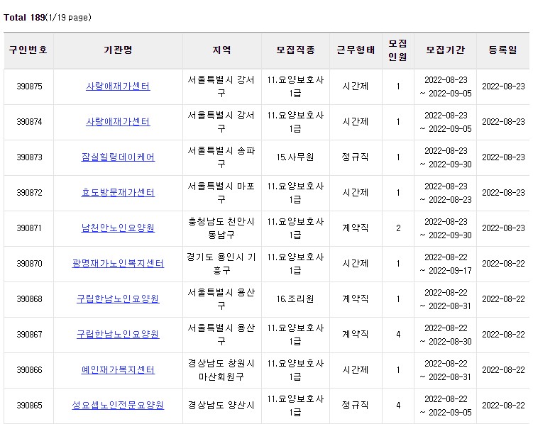 각 요양기관의 구인구직 정보를 확인하고 응시할 수 있습니다.