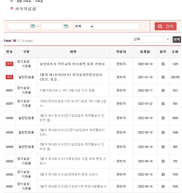 장기요양기관에서 근무하는 종사자 분들이시라면 관련 서식을 서식자료실에서 찾아서 출력해 이용할수 있습니다.