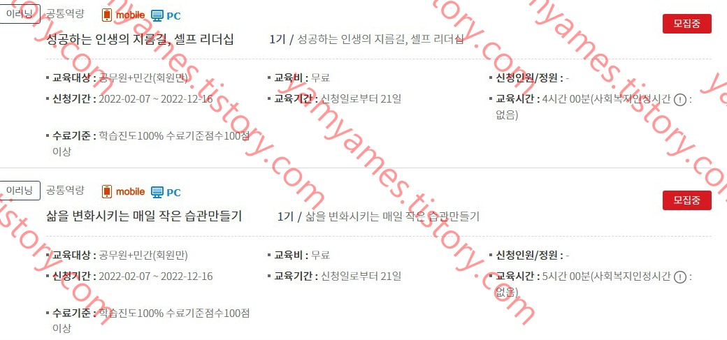 모집중인 과정을 클릭해 수강신청을 해서 교육을 이수 할 수 있습니다.