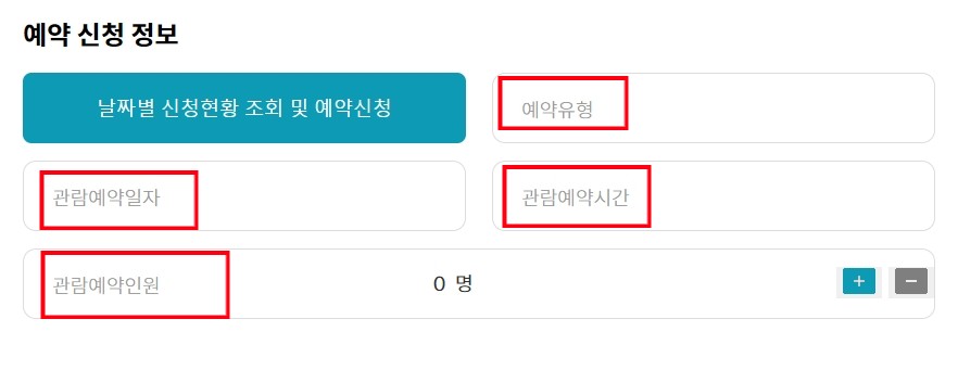예약 신청 정보에서 관람 예약일자에서 방문을 원하는 날짜를 클릭합니다.
