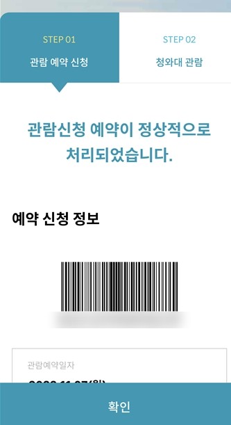 이렇게 관람예약 신청에서 바코드와 예약 일자 정보등이 나타납니다.