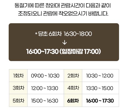 동절기에는 청와대 관람시간이 약 30분 정도 마감시간이 단축 되었습니다.