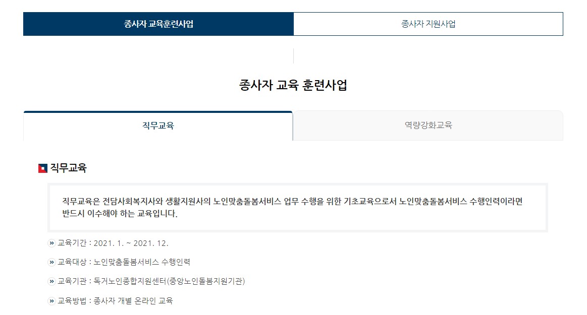 특히 생활지원사로 근무 하려면 해당 직무교육과 역량강화 교육을 이수 해야 합니다.