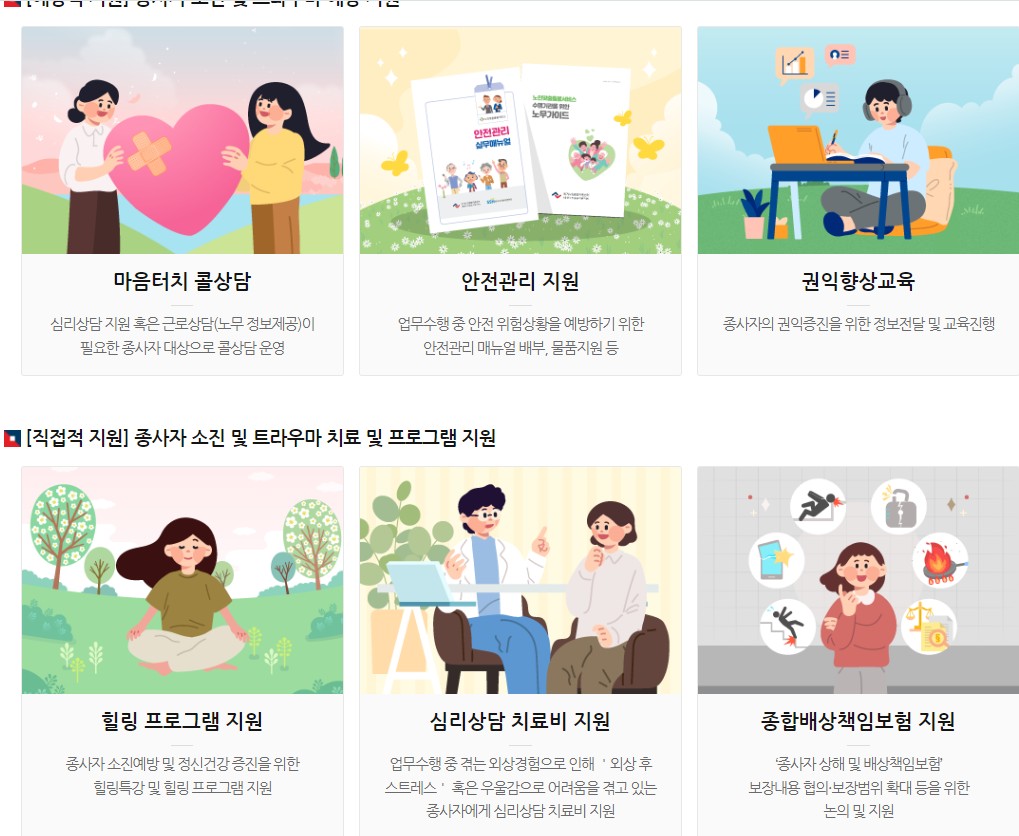 종사자 분들을 위한 종사자 소진 및 트라우마 예방지원 및 치료 프로그램 지원사업도 진행합니다.