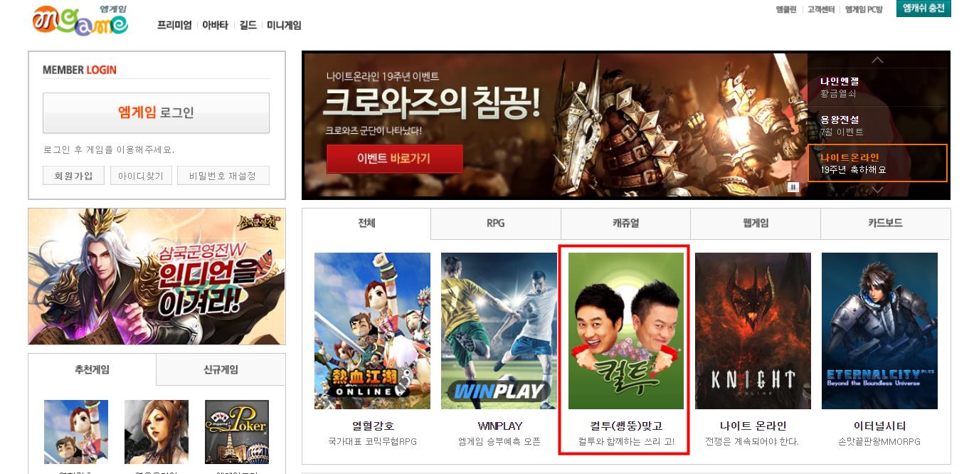 컬투 맞고는 엠게임에서 제공하는 맞고,고스톱 게임입니다. 엠게임은 2000년부터 온라인게임 포털서비스로 시작해 한게임,넷마블등과 같은 대표적인 게임 포털 서비스 인데요.