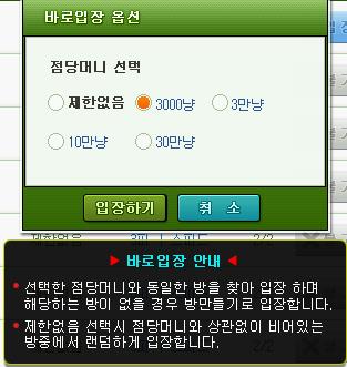 바로입장 옵션도 시작전 점당 머니를 선택하면 맞는 게임에 매칭이됩니다.