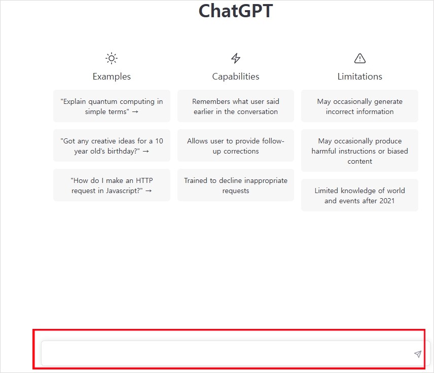 위와 같은 화면에서 맨 아래에 있는 창에서 한국어나 영어 등으로 질문 내용을 입력합니다.