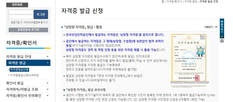 그후 시험을 치룬후 시험에 합격하면 자격증 발급신청이 가능합니다.
