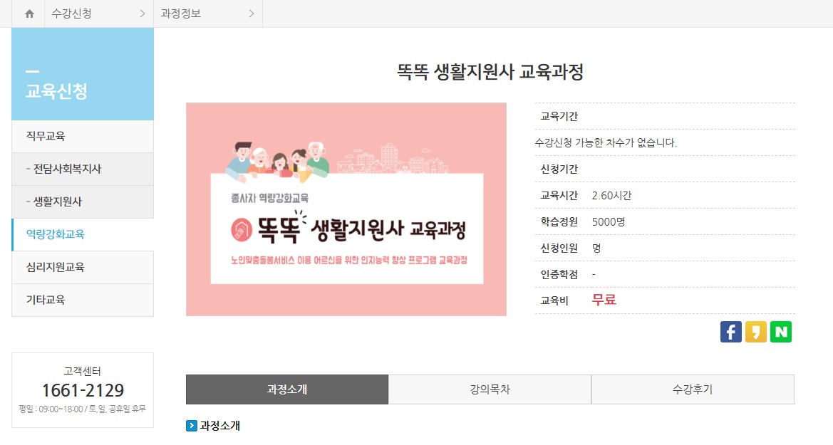 생활지원사 경력자 과정은 기초교육 18차시, 심화교육 9차시 총 27차시를 이수해야하며 각 차시당 시간은 30분 내외 입니다.