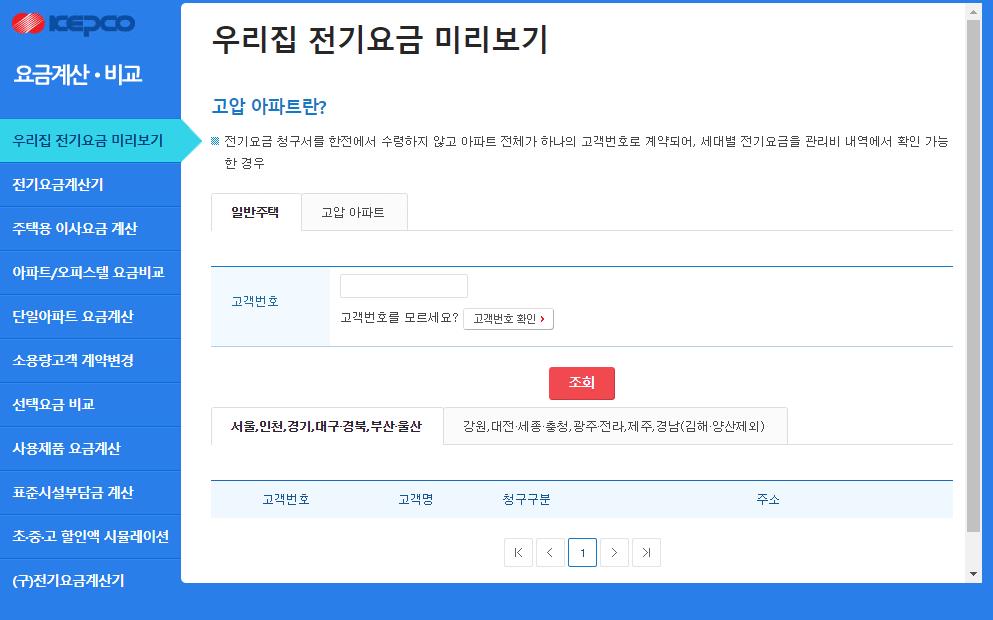 여름에 우리집 전기요금이 왜이렇게 많이 나왔는지, 우리 아파트의 전기요금이 적당히 나왔는지, 이사를했는데 전기요금을 정산하고 싶다던가, 전기요금 고지서에 있는 명의를 변경하고자 할때 주로 사용하게 되는 사이트입니다.