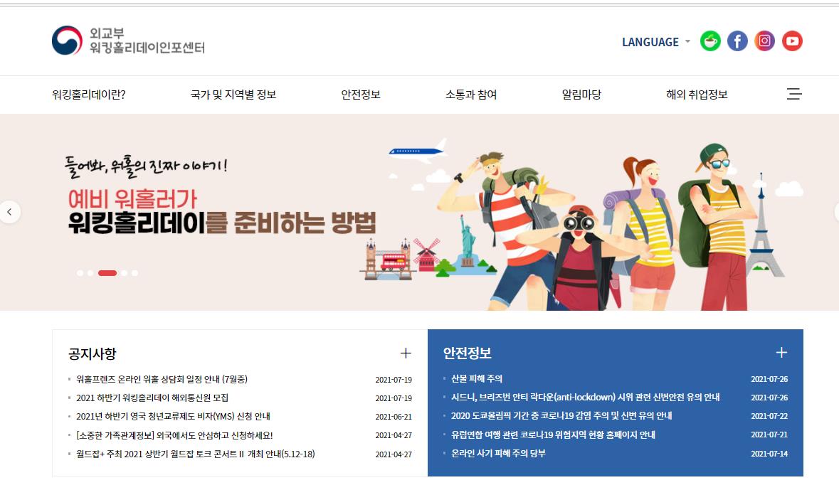 워킹홀리데이인포센터 홈페이지에서는 현재 대한민국과 연계된 워킹홀리데이 정보들을 확인 할수 있습니다.