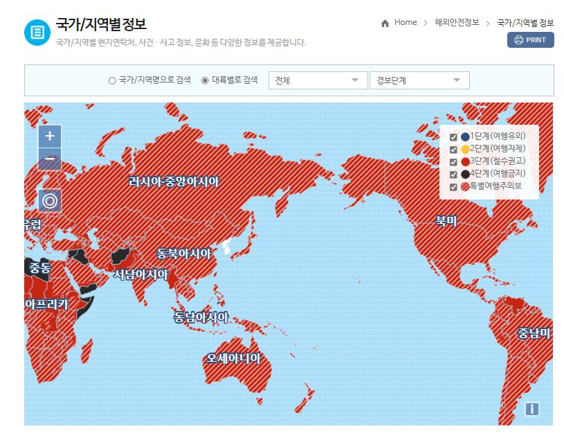 해외 안전여행 페이지를 통해 국가별 지역별 여행 정보를 알수 있습니다.