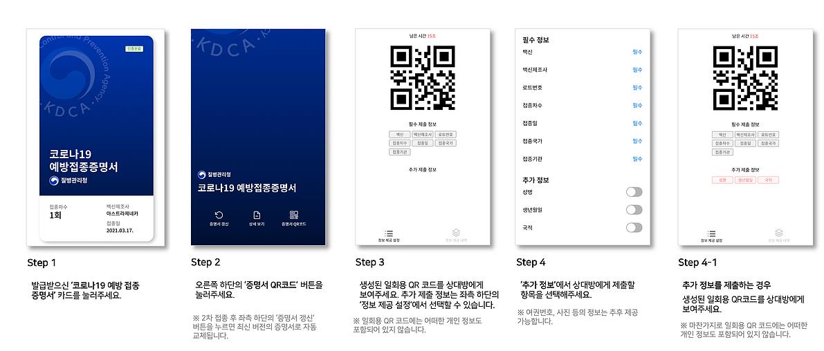 상대방이 어떤 백신을 접종하였는지 몇차례 맞앗는지 확인이 가능합니다. 이때 상대방의 개인정보는 저장이 되지 않는다고 합니다.