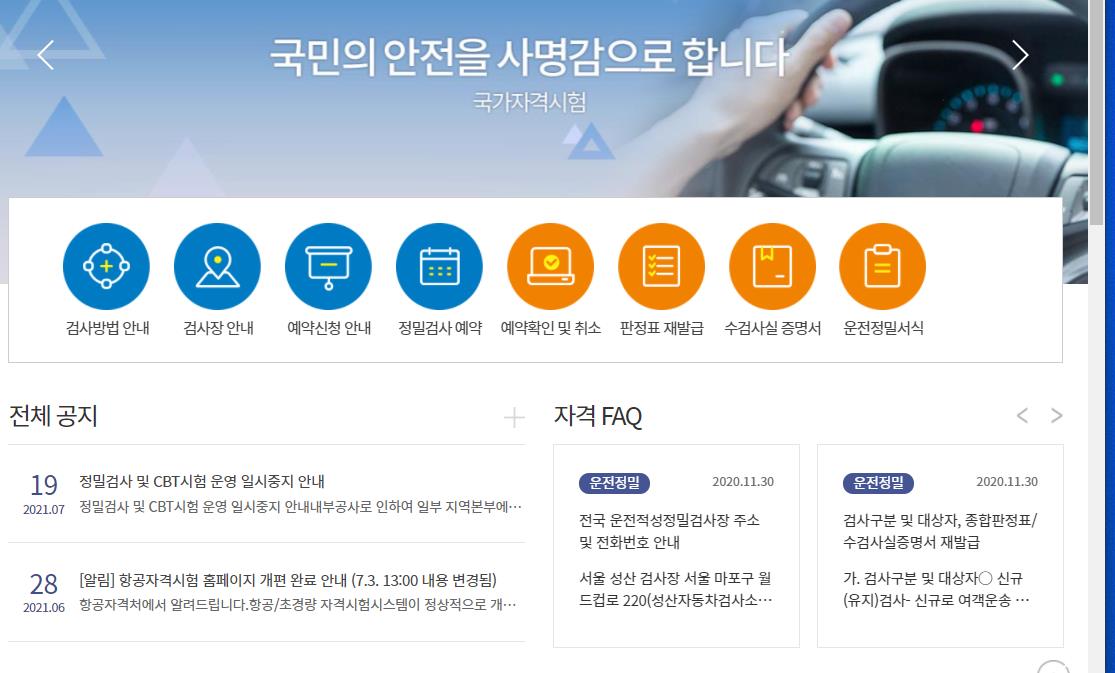 운전적성정밀검사와 도로자격시험,교통안전관리자,철도자격,항공자격등 운전과 관련된 업무를 수행하는 사이트입니다.
