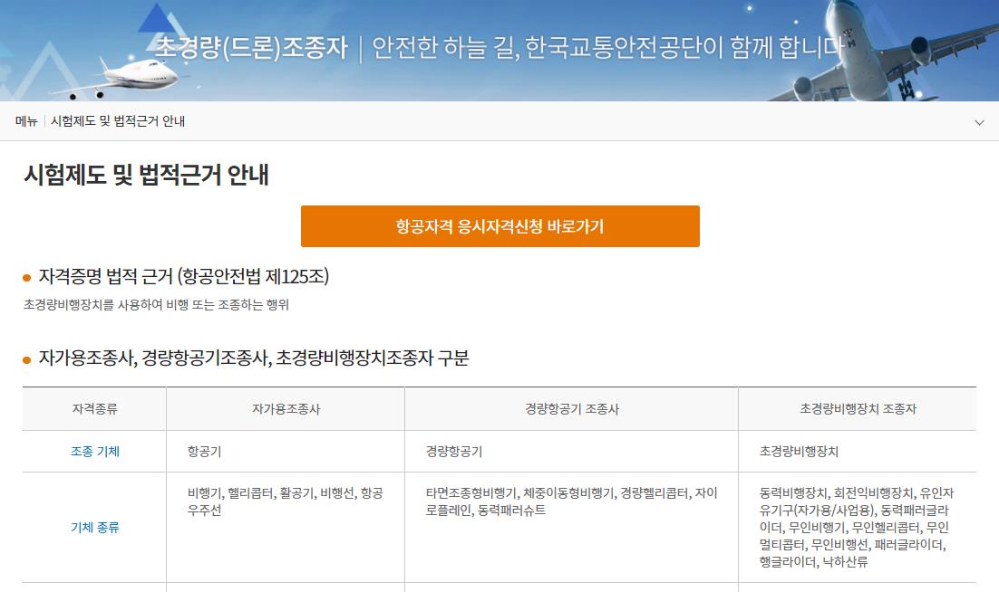 조종사와 항공정비사,항공교통관제사,운항관리사,경량항공기 조종사,항공영어구술(EPTA)초경량,드론 조종사 자격증을 따려면 이 사이트에서 응시자격을 확인한후 시험 접수를 해야합니다.