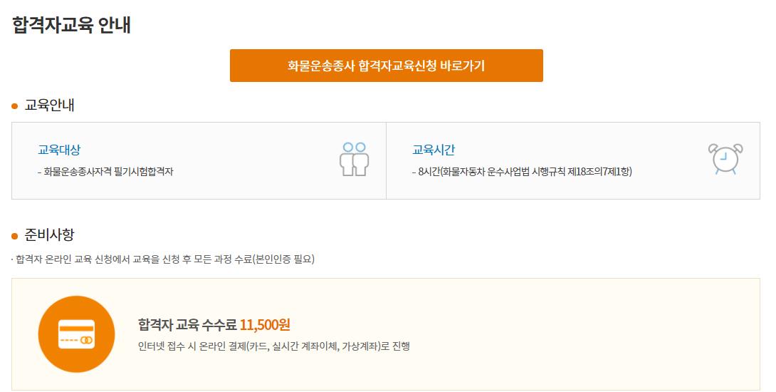 화물운송종사자격 필기시험 합격자는 화물합격자교육을 온라인을 8시간 이수해야합니다.