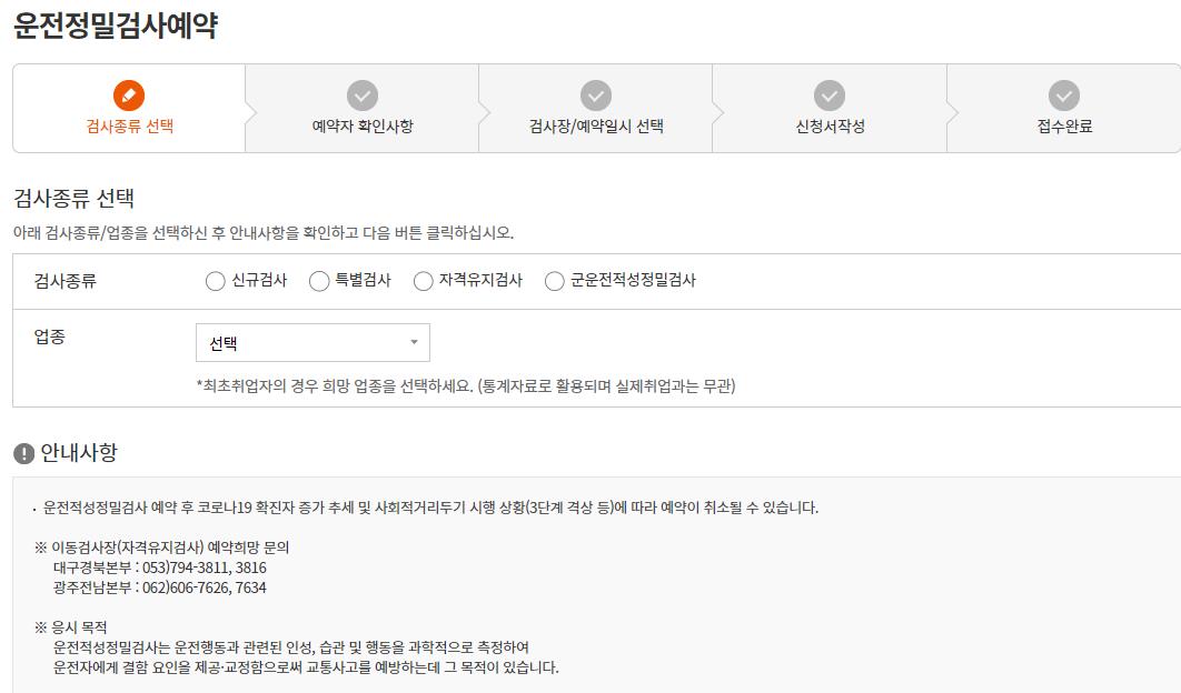 온라인으로 운전정밀 예약검사를 신청할수 있습니다.