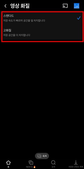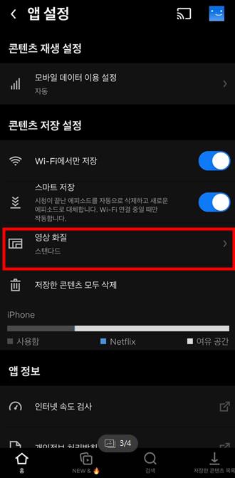 그중 콘텐츠 저장 설정에 있는 세번째 '영상화질'을 클릭합니다.