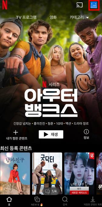 넷플릭스 앱, 어플에 들어가 맨 상단에 잇는 나의 아이콘을 클릭합니다.