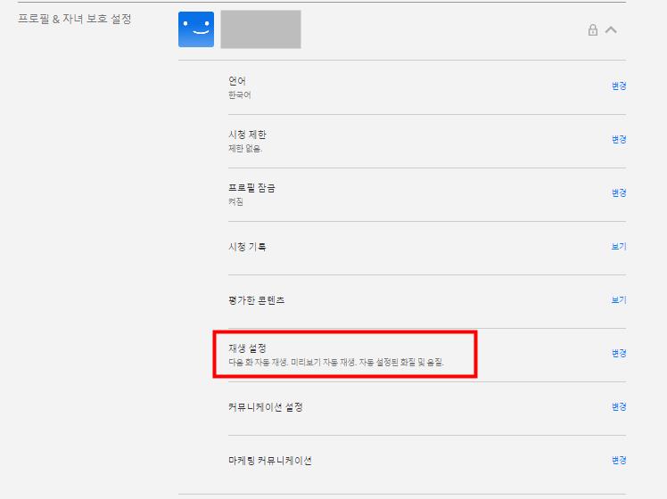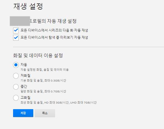 재생 설정에서 모든 디바이스에서 시리즈의 다음회 자동재생이나 탐색중 미리보기 자동재생을 선택할수 있습니다.