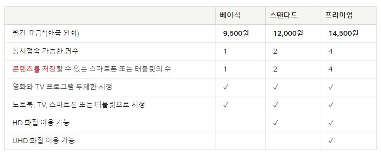 넷플릭스는 베이식과 스탠다드,프리미엄 세가지 요금제가 있습니다.