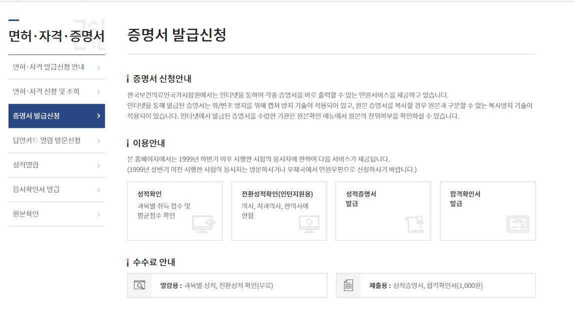 시험 응시외에도 면허와 자격증,증명서 발급신청을 할수 있습니다.