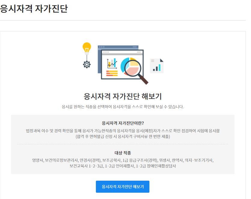 응시자격 자가진단을 통해 내가 대상직종에 응시 할수 있는지 미리 확인해볼수 있습니다.