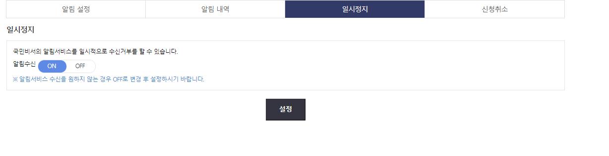 다 신청해놨다가 알림을 받고 싶지 않으면 일시정지 페이지에서 수신거부로 변경 할수 있습니다.