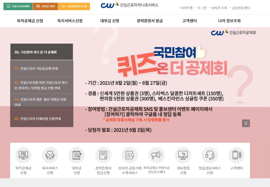 퇴직공제금을 신청하거나 복지서비스,대부금,경력증명서를 발급받을수 있는 근로자를 위한 홈페이지라고 볼수 있습니다.
