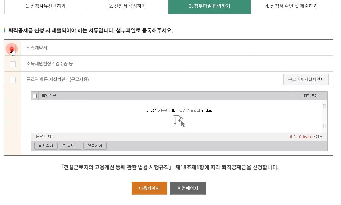 그외 퇴직사유에 맞게 필요한 서류들을 구비하여 첨부파일에 입력합니다.