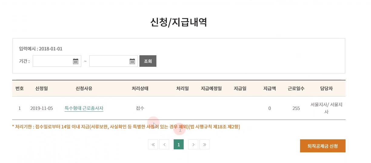 퇴직금을 신청한수 신청 지급내역에서 확인하면 나의 퇴직금 신청 진행사항을 확인할수 있습니다.