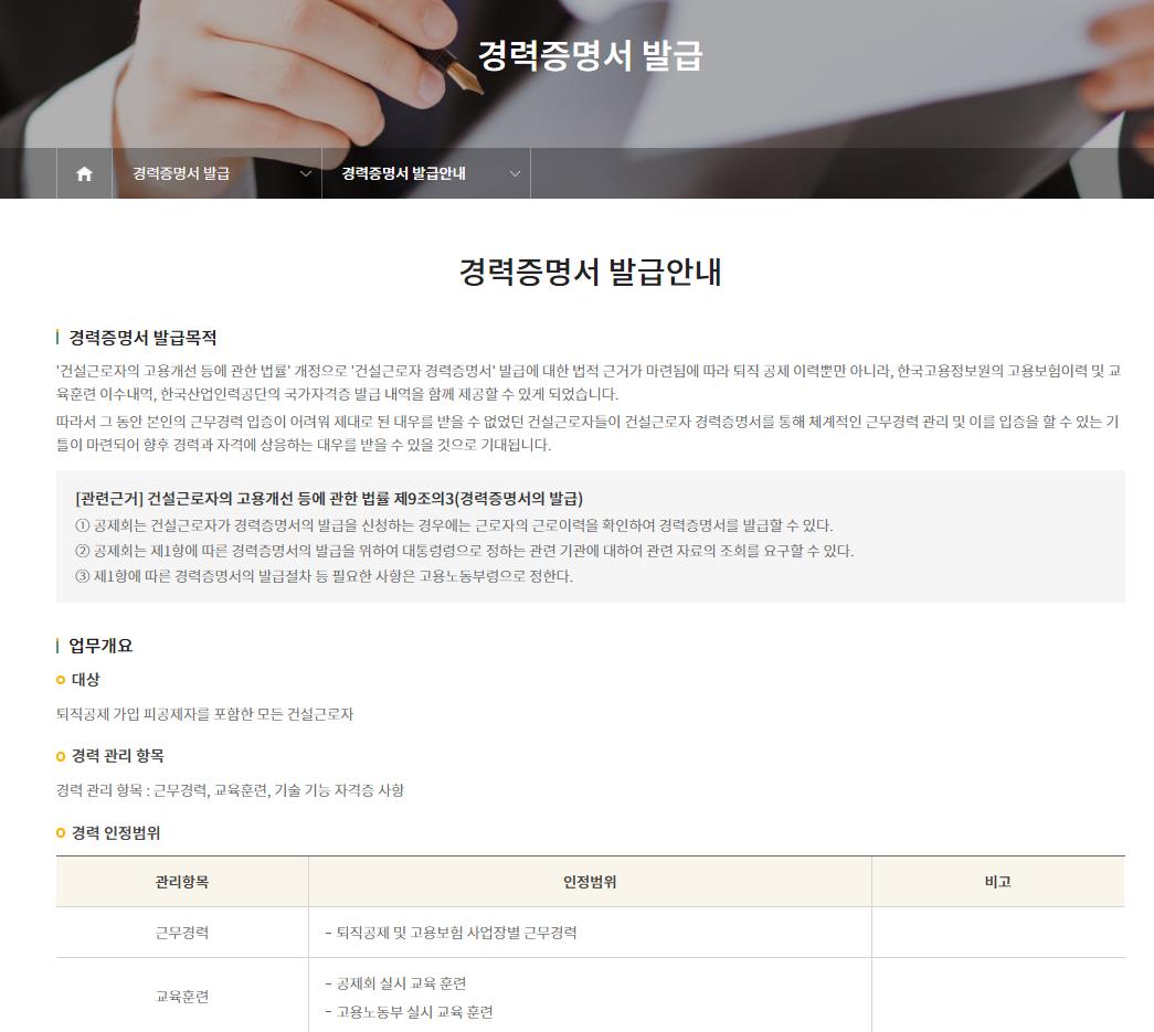 건설근로자 공제회 홈페이지에서는 경력증명서 발급받을수도 있습니다.
