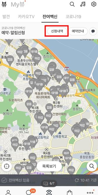 거기서 발견,카카오tv옆에 잔여백신을 선택하면 잔여백신 현황 지도가 나옵니다.