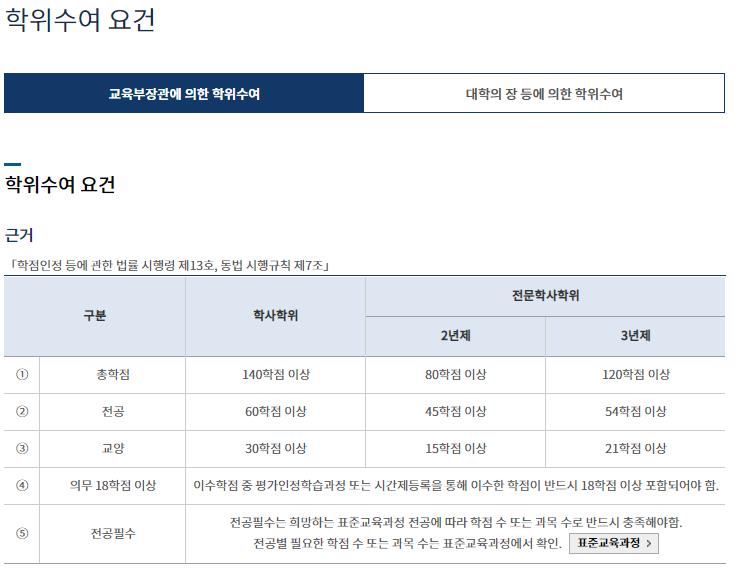 학위 수여를 위해서는 유형마다 필요한 학점이 있습니다.