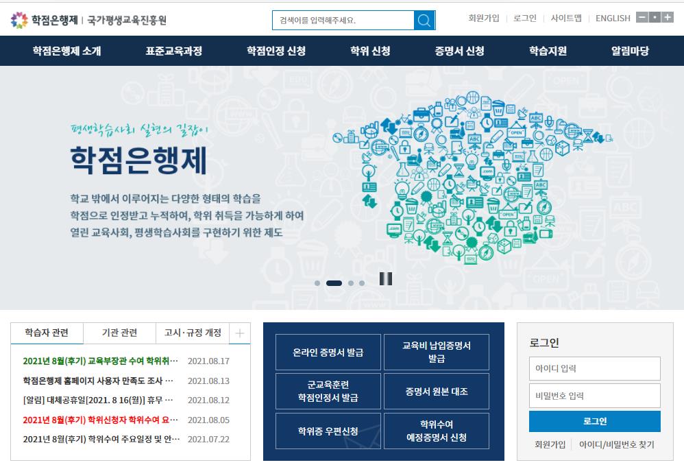 학점은행제 홈페이지에서는 관련된 증명서를 발급 신청할수 있습니다.