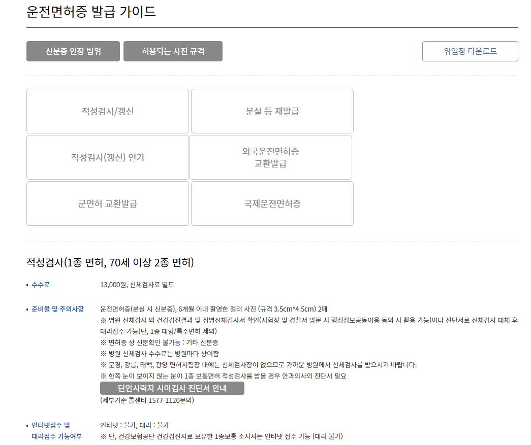 안전운전통합홈페이지에서 운전면허증을 갱신, 재발급 등을 신청할수 있습니다.