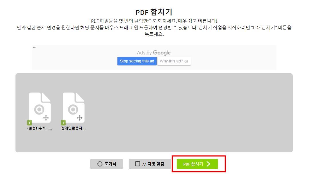 합치기 뿐만아니라 분할과 회전,PDF압축도 가능한 알아두면 급할떄 써먹을수 있는 좋은 사이트입니다.