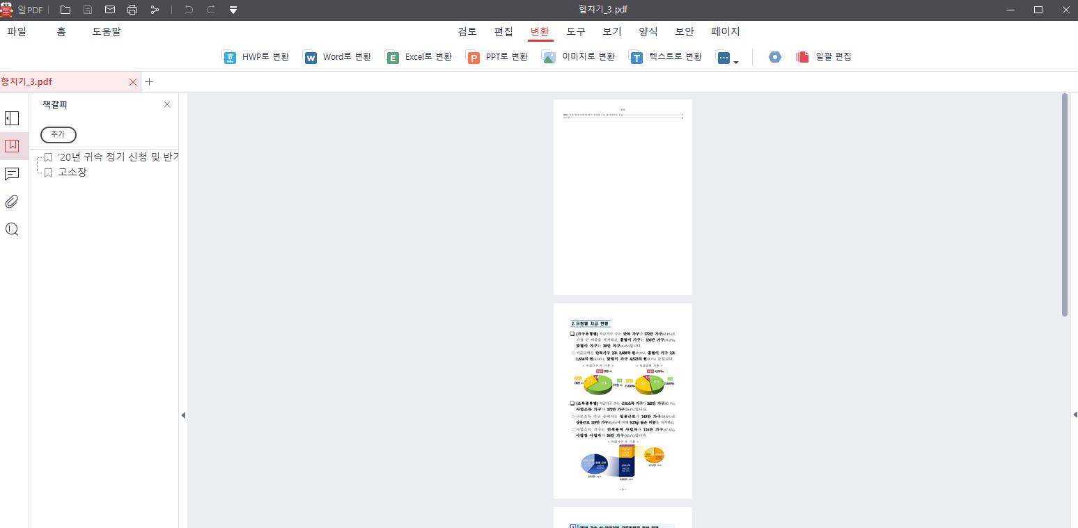 알pdf는 원하는 페이지만 합칠수 있는 기능도 있어 좀더 편리하게 이용이 가능합니다.