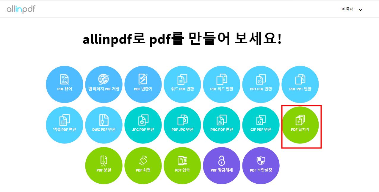 allinpdf는 영어 버전과 한국어 서비스도 제공하고 있습니다.