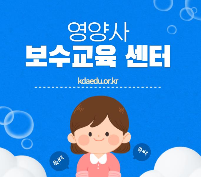 영양사 보수교육센터 홈페이지는 kdaedu.or.kr입니다. 보수교육 뿐만아니라 특별위생교육도 함께 이수할수 있습니다.