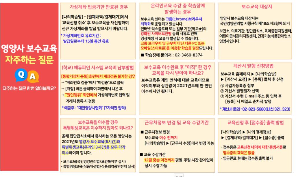 영양사 보수교육센터 홈페이지